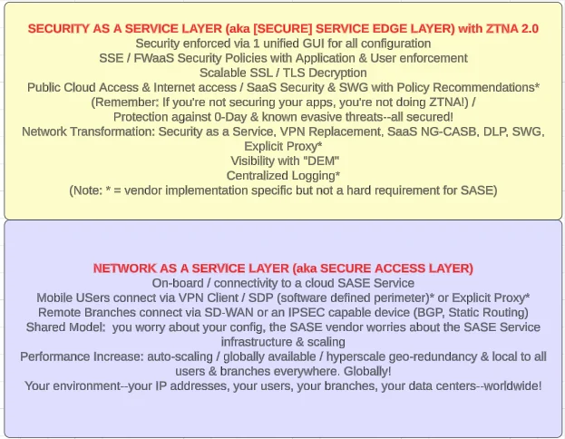 It helps to think of SASE as broken up into two layers, similar to how we’ve used the OSI model to make sense of networking in the past: